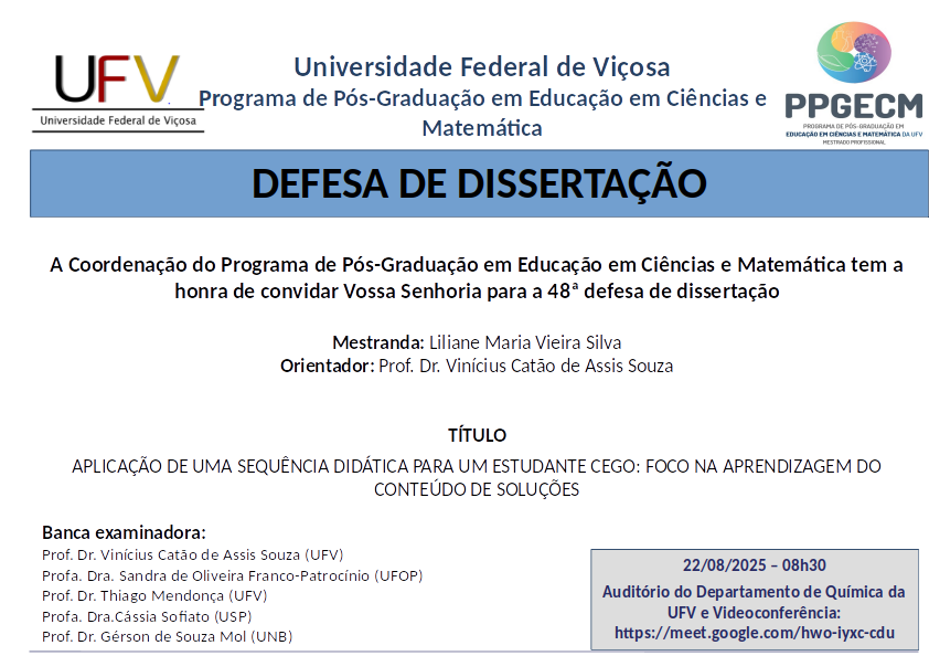 Convite Defesa de Mestrado de Liliane Maria Vieira Silva