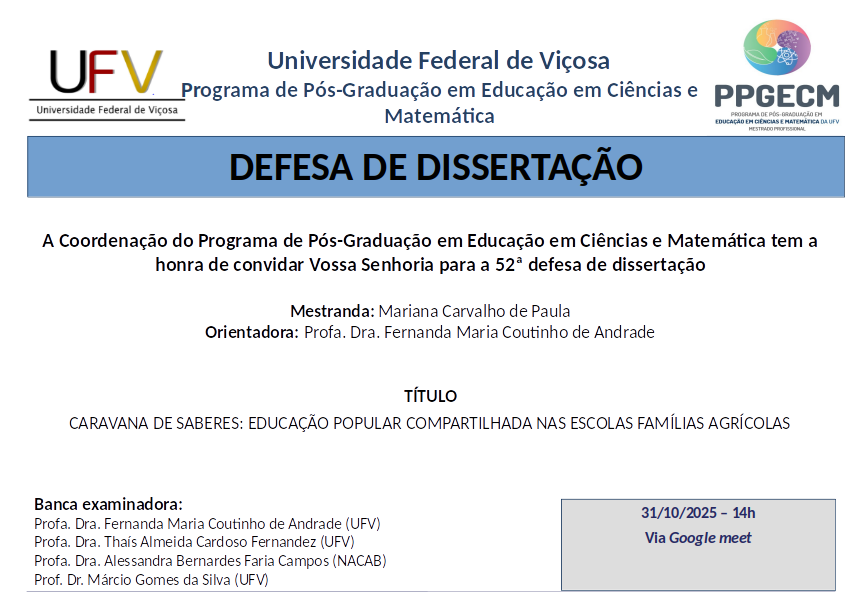 Convite Defesa de Mestrado de Mariana Carvalho de Paula